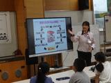 モンテディオ山形食育推進事業 10/08 今週の「心を育む給食週間」に合わせて、モンテディオ山形の背番号9番、FWとして大活躍中の高橋潤哉選手をお迎えし、「食事の大切さ」について学びました。県の食育推進事業の一環として実施しました。 高橋潤哉選手の入場です。本校職員が紹介しています。 クイズ形式で、「朝ご飯の大切さ」について考えています。近くの人と相談しています。高橋選手にもクイズに答えていただきました。 選手への質問コーナーです。 「ゴール裏の声援は選手に届いていますか?」「ちゃんと届いていますよ。」 「今まで対戦した中で一番強いキーパーは誰ですか?」「一緒のチームにいた後藤選手です。」 「好きな選手は誰ですか?」「バルセロナで活躍したルイス・スアレス選手です。」 どの質問にも丁寧に答えていただきました。 お楽しみの「選手とレクリエーション」のコーナーです。 最初はリフティングでのボール回し。4人でボールを受け渡しながら2周に挑戦しました。代表生徒3人はサッカー経験者です。 何回かチャレンジし、見事、成功! 続いてパス交換です。学年から代表生徒2名ずつが参加しました。サッカー経験者も未経験者も、貴重な経験となりましたね。(職員も2人跳び入りで参加しました!) パス交換に参加した6名から、高橋選手にお礼と応援の言葉を伝えました。 給食関係を担当する厚生委員長から、お礼の言葉です。 今日は、プロサッカー選手から自身の食生活を通した中学生に向けた食に関するメッセージをいただきました。生徒の皆さん、朝ご飯と学力・運動能力との関係、栄養バランスの取れた食事の大切さなど、高橋選手と学んだことを今後の食生活に生かしていきましょうね。 高橋潤哉選手、ありがとうございました!今シーズンの試合も残り少なくなりました。大富中のみんなが応援しています。最後まで頑張ってください!