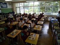 この日は「さくらんぼ給食デー」として,おいしいさくらんぼをいただきながら,「佐藤錦の誕生」や「G1保護制度への登録」について,東根市民として知っておきたい知識を学びながらの給食でした。給食を担当する厚生委員長が,別紙について,放送で伝えたところです。
