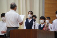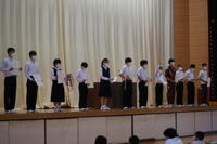 6月22日(水)の朝1時間目、地区総体や大富農業カンパニーの報告会を体育館で行いました。地区中水泳大会400mリレーで優勝したメンバーを先頭に、各種目での結果をステー上で報告しました。次のステージに進む生徒も、この大会を最後に引退する生徒も、それぞれの思いを真剣に伝えました。
