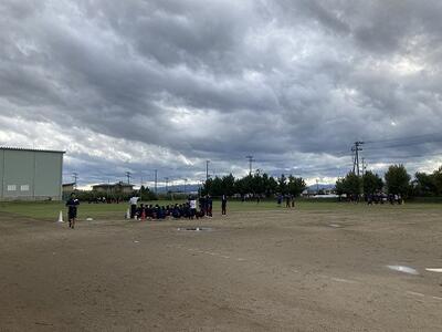 6校時は雨が上がり、グラウンドが乾いてきました。外で種目練習を行いました。