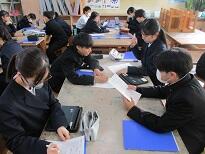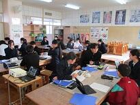 他の班の発表を、教科書で確かめながら聴いている人もいます。