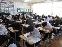 公立高校入試関係の日程が例年より早くなったことから、3年生の2学期期末テストを例年より早めて本日行いました。学習の成果を発揮したい、直前のチェックをしたいなどと、朝早くから登校した人が多かったようです。さすが3年生、意欲が行動に表れていますね。