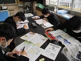 同じころ、1,2年生はテスト前学習会に取り組んでいました。自分で集中したい人、仲間と教え合いたい人に分かれて学習していました。