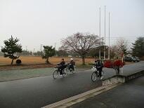 生徒が登校し始めました。自転車、防寒をしっかりしていますね。前のかごに見えるのはアルミ缶!?