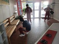 3年生の職員玄関掃除担当生徒です。普段なかなか掃除ができないところを自主的に掃除をしていました。さすが、3年生!