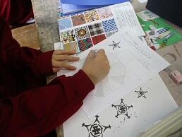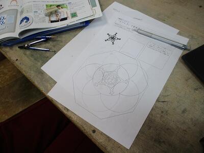 コンパスで模様を描いたりして、試行錯誤しています。