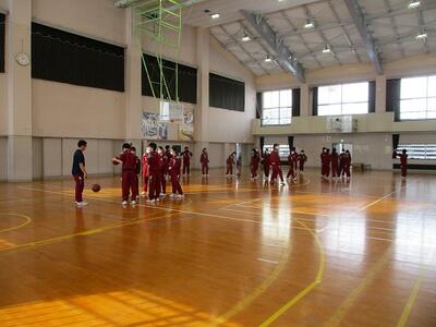 6校時の体育館は、3年生の保健体育です。バスケットボールとサッカーに分かれて授業をしていました。