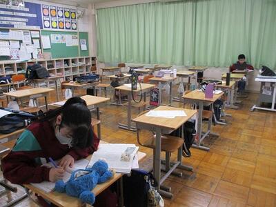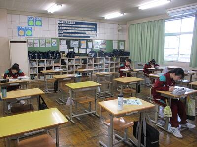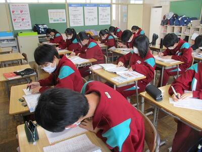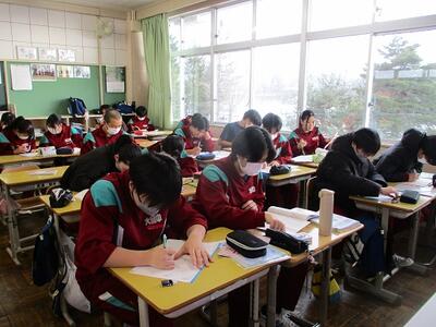 他に、廊下などで教員に質問しながら学習している生徒もいました。2月13日(金)がテスト本番です。学習に取り組むよい雰囲気を保ちながら、1年間の学習内容を少しでも身に付けたいですね。