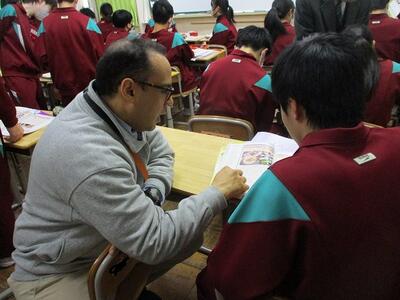 今日は、ALTを含めて英語科教員4人で教えていました。すばらしい環境ですね。