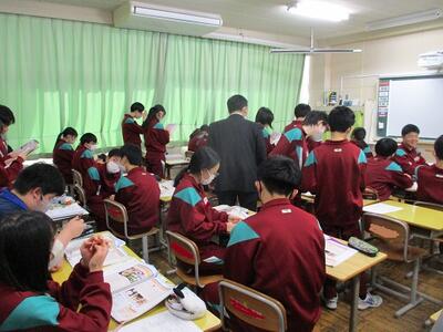 明日は「建国記念の日」でお休みです。2/13(金)の期末テスト、3/7(土)の3年生の高校入試に向けて、学習を積み上げてほしいです。体調管理にも十分気をつけましょう。
