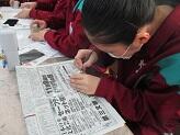 早い人は試し押しをしていました。さらに修正を重ねてして完成させます。 完成したら、3学期に行う「筆文字アート」の色紙に押印します。